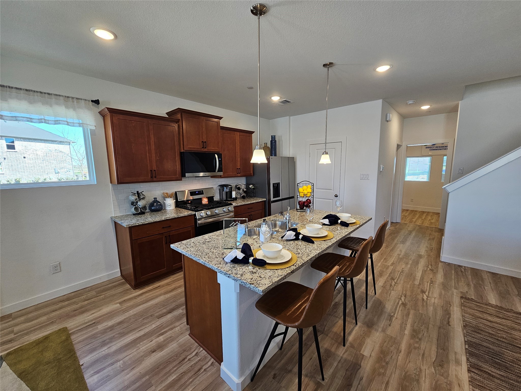 DIRECT RESIDENTIAL COMMUNITIES HOME, Corner Unit, Fridge Washer, Dryer, Garage Door Opener, Blinds included. (The Isaac plan) is a Brand new townhome located in the heart of the prestigious master-planned community Solterra! Located in Mesquite Texas, Solterra is a 1400-acre Master Planned Community - amenities will include a pool complex, access to a 30-acre Lake for Kayaking & Canoes, a Stocked Pond with Fishing Shack, bike and hiking trails, a fitness facility, a dog park, a beer garden, and a unique treehouse park designed by Animal Planet’s Treehouse Masters. The community will also feature a swim-up bar, an event lawn, and plenty of space for entertainment. Solterra is just 11 miles from downtown Dallas, at the crossroads of 4 major highways, I-30, I-635, I-20, and US 80, providing easy access to DFW.