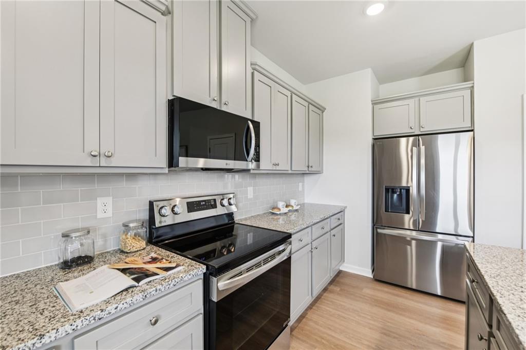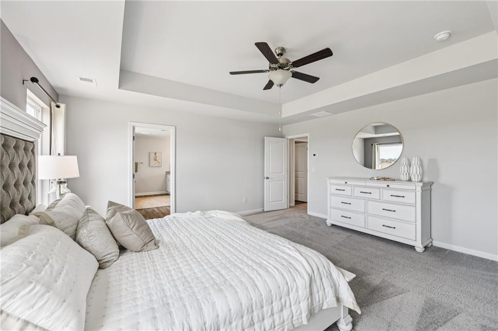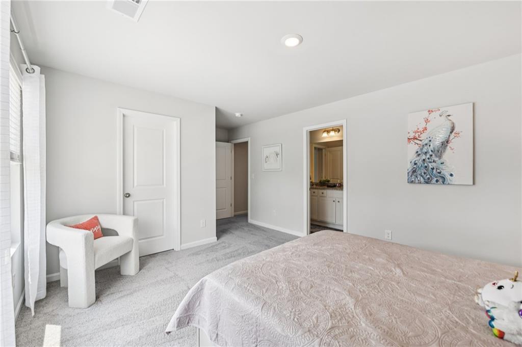 Introducing the DRESDEN! This exquisite home - ready in February - is a 5 bedroom floor plan masterfully crafted by Direct Residential Communities. Nestled within a resort-style swim and tennis community, this home offers unparalleled amenities for your ultimate enjoyment and relaxation. Upon entering, you are greeted by a grand two-story foyer that flows seamlessly into an open, thoughtfully designed living space with 9-foot ceilings and ambient LED disc lighting. The main level features a private guest bedroom with a full bath—perfect for visitors or multi-generational living. The gourmet kitchen is a chef’s dream, boasting a generous center island with granite countertops, timeless 36-inch shaker cabinets, an elegant tile backsplash, and a bright breakfast area that effortlessly opens into the family room. Here, a cozy fireplace creates a warm and inviting atmosphere for gatherings. Step through the breakfast area onto a concrete patio, ideal for alfresco dining or unwinding in your private backyard oasis. Silent flooring systems and exquisite vinyl plank flooring throughout the main level enhance the home’s tranquil ambiance. Ascend the open iron rail staircase to the owner’s suite, a serene retreat complete with a spacious sitting area, dual closets, and an indulgent en-suite bath featuring dual vanities, a walk-in shower, and a luxurious garden tub framed by a picturesque window. The upper level also offers three generously sized bedrooms, a shared bath with dual vanities, and a conveniently located laundry room. For added security and convenience, a smart lock provides keyless entry. The 2-car garage offers ample space, complemented by extended driveways and well-maintained sidewalks throughout this prestigious community. Experience the epitome of elegant living—schedule your tour today.
