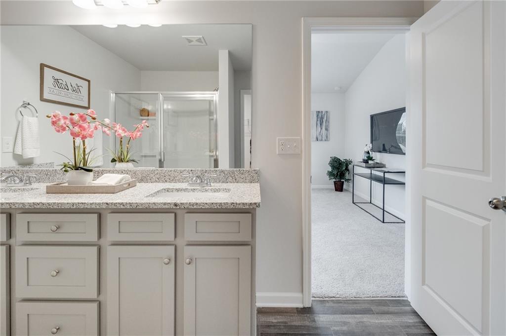 The Lenox floor plan at Creekside Village is the townhome of our dreams! HIGHLY DESIRED END UNIT! Gorgeous hardwoods throughout the main level flow effortlessly to a bright family room with cozy fireplace. The open floor plan gives you easy access to an amazing kitchen stocked with sleek cabinets, granite countertops, massive island & upscale recessed lighting! Upstairs you will find a stunning owner's suite with large bath which boasts dual vanity, standing shower and a spacious walk-in closet! Three additional bedrooms and hall bath with granite counters round out the upper level. Awesome amenities include a pool and tennis courts. With easy access to major highways, this divine community is meant for you!