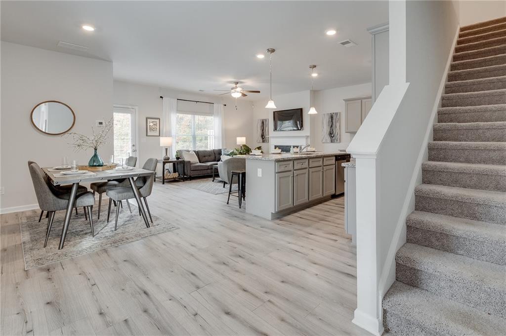 The Lenox floor plan at Creekside Village is the townhome of our dreams! Gorgeous hardwoods throughout the main level flow effortlessly to a bright family room with cozy fireplace. The open floor plan gives you easy access to an amazing kitchen stocked with sleek cabinets, granite countertops, massive island & upscale recessed lighting! Upstairs you will find a stunning owner's suite with large bath which boasts dual vanity, standing shower and a spacious walk-in closet! Three additional bedrooms and hall bath with granite counters round out the upper level. Awesome amenities include a pool and tennis courts. With easy access to major highways, this divine community is meant for you!