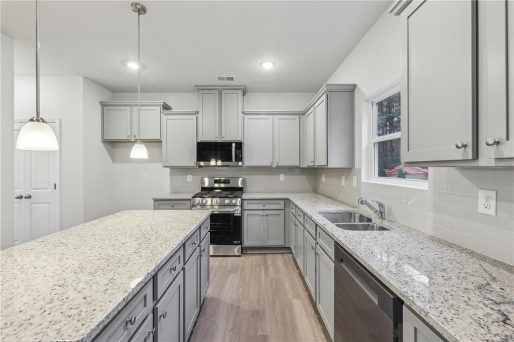 MOVE-IN READY! The large backyard and extended driveway provide ample space for extra parking or outdoor enjoyment. Inside, you'll find grand interiors and an open-concept layout. Enter through a dramatic foyer into a flexible formal space that can serve as a home office, guest room, or additional sitting area. The separate dining room and large great room, complete with a stunning gas fireplace, are perfect for entertaining. The dream kitchen is bathed in natural light and features LG stainless steel appliances, abundant cabinet space, and thoughtful design details. Upstairs, the expansive owner’s suite includes a private sitting area and a spa-inspired en suite bathroom. Spacious secondary bedrooms provide comfort for family or guests. Don’t miss this rare opportunity to own a stylish, well-appointed home with exceptional incentives in one of Loganville’s most desirable communities. Welcome to Stephens Landing in the heart of Loganville, Gwinnett County. The Brentwood Plan offers luxurious living. *Stock photos