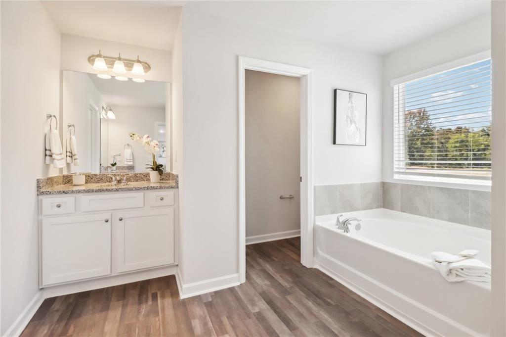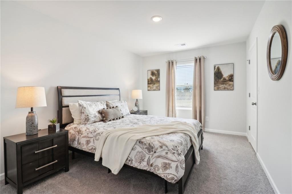 The large backyard and extended driveway provide ample space for extra parking or outdoor enjoyment. Inside, you'll find grand interiors and an open-concept layout. Enter through a dramatic foyer into a flexible formal space that can serve as a home office, guest room, or additional sitting area. The separate dining room and large great room, complete with a stunning gas fireplace, are perfect for entertaining. The dream kitchen is bathed in natural light and features LG stainless steel appliances, abundant cabinet space, and thoughtful design details. Upstairs, the expansive owner’s suite includes a private sitting area and a spa-inspired en suite bathroom. Spacious secondary bedrooms provide comfort for family or guests. Don’t miss this rare opportunity to own a stylish, well-appointed home with exceptional incentives in one of Loganville’s most desirable communities. Welcome to Stephens Landing in the heart of Loganville, Gwinnett County. The Bellwood Plan offers luxurious living. *Stock photos