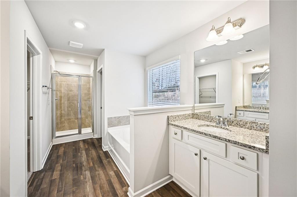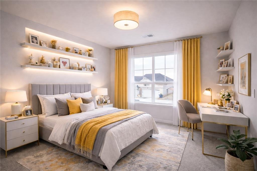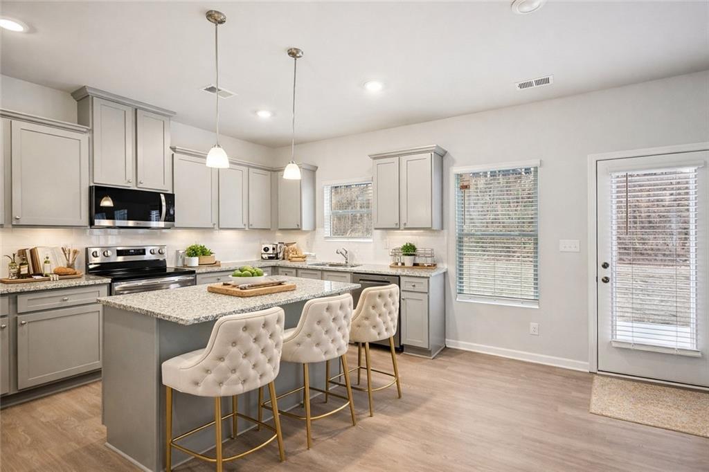 USDA-ELIGIBLE COMMUNITY. Qualified buyers may qualify for 100% financing and closing cost assistance through approved lender programs. Introducing the Downey! Exquisite 4 bedroom floorplan ***READY IN JUNE*** at The Hills at Cedar Creek, expertly crafted by Direct Residential Communities. Located in a resort-style swim and tennis community, this thoughtfully designed home blends comfort and sophistication with access to exceptional neighborhood amenities. Step into a welcoming two-story foyer that opens into a spacious, open-concept living area featuring 9-foot ceilings and ambient LED disc lighting. The main level includes a private guest bedroom with a full bath—perfect for visitors or multi-generational living. The gourmet kitchen is a showstopper, equipped with a large center island topped with granite, 36-inch shaker-style cabinets, a classic tile backsplash, and a sunlit breakfast area that flows effortlessly into the cozy family room with a warm fireplace centerpiece. Just off the breakfast nook, enjoy outdoor dining or relaxation on the concrete patio, overlooking your private backyard. Vinyl plank flooring and a silent flooring system ensure both style and serenity throughout the main level. Upstairs, the owner’s suite is a peaceful retreat, offering a spacious sitting area, dual closets, and a luxurious en-suite bath with dual vanities, a walk-in shower, and a garden tub set beneath a charming window. Two additional bedrooms share a full bath with dual sinks, and a conveniently placed laundry room completes the upper level. Additional highlights include smart lock keyless entry, a 2-car garage with extended driveway, and easy access to sidewalks that wind through this prestigious community. Discover refined living in the Downey—schedule your personal tour today.