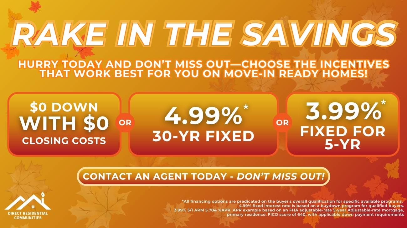 Fall is the season for big moves—and even bigger savings! Now’s your chance to lock in an unbeatable offer and move into your dream home in Metro Atlanta! Choose the incentives that work best for YOU: